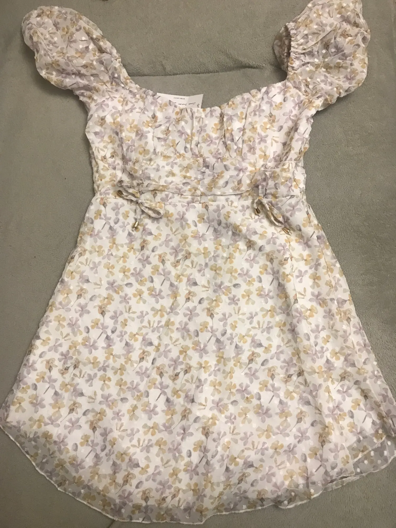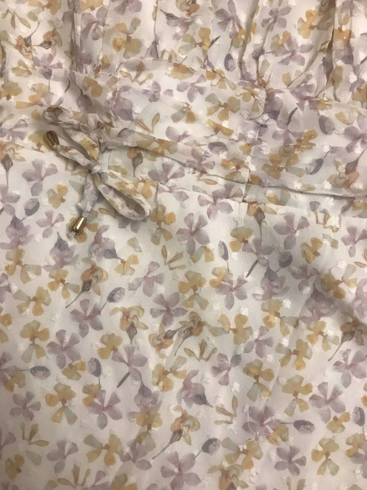 A pretty and feminine summer dress featuring a ruched bodice and floral print.